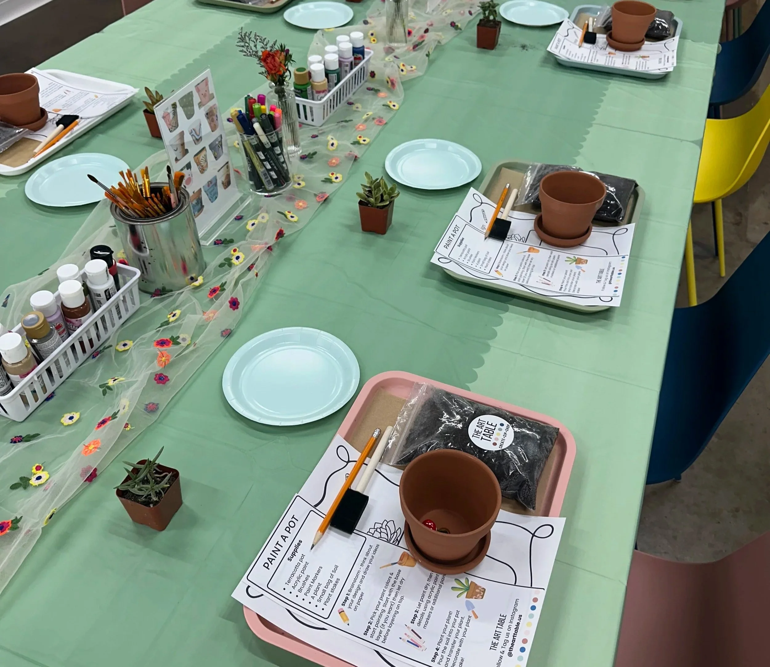 Celebrate your special day with a Garden Party where creativity and nature come together! Perfect for teens who love DIY projects and aesthetic vibes, this unique birthday experience lets guests paint their own terracotta pot and all guests will go home with a succulent, plant stick & mini bag of soil!